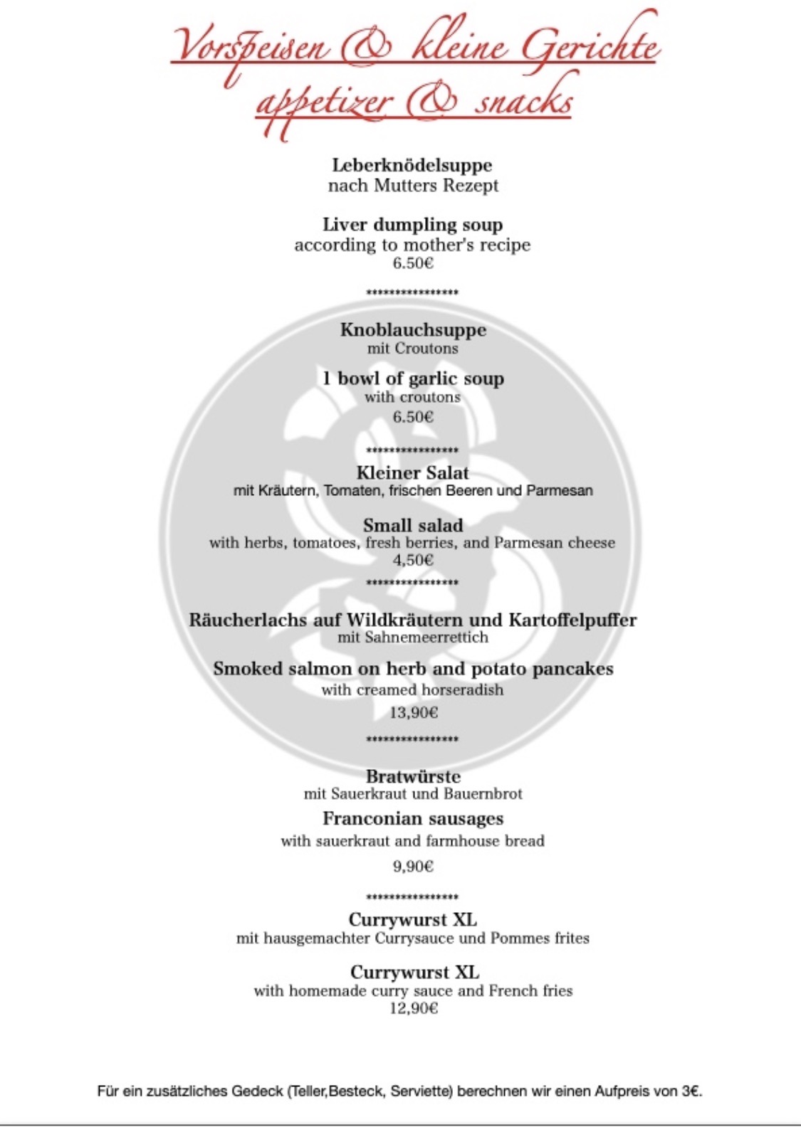 Wenn Sie mit Ihrer Familie einen gemütlichen Mittag oder Abend mit deutschem Essen verbringen wollen, ist unser Restaurant einen Besuch für Sie wert.